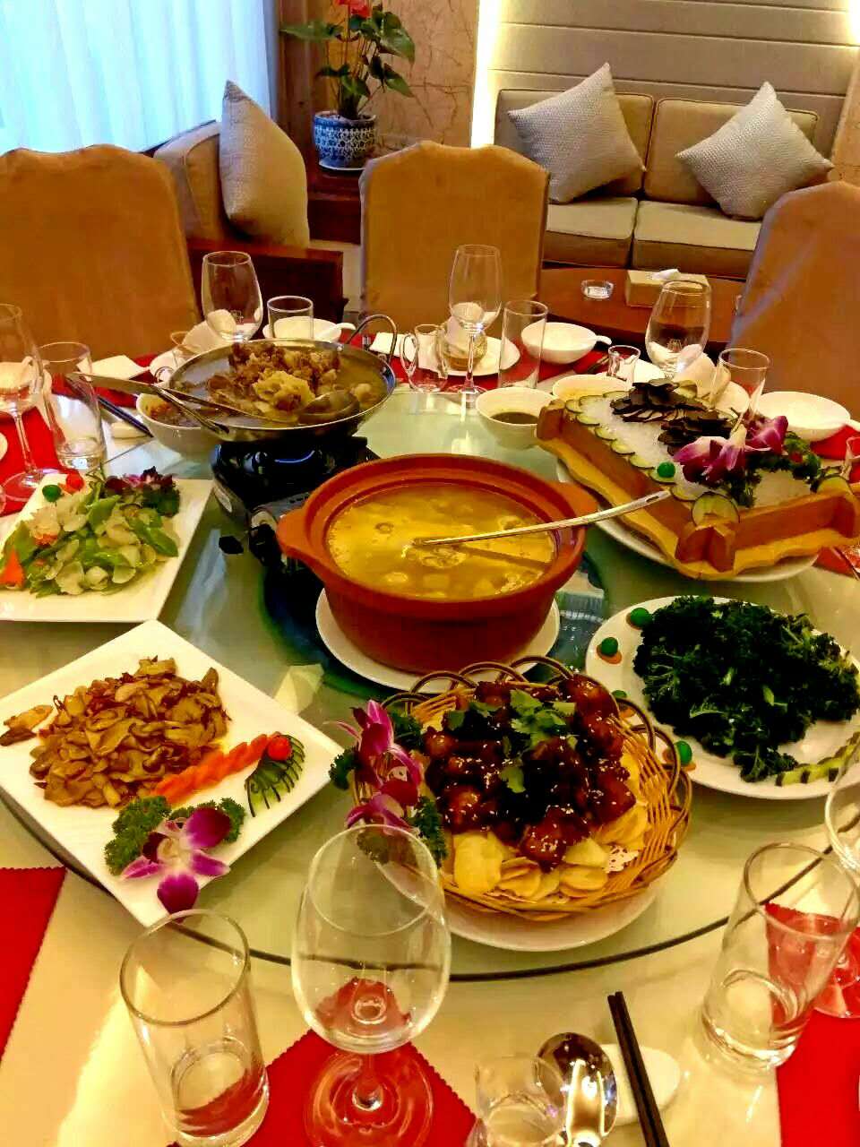 宴會廳可同時容納150人就餐,精致寬敞、是朋友聚會、商務(wù)宴請、喜慶婚宴的理想場所。我們秉承 “土菜精做、健康生態(tài)” 的理念融合滇菜之濃郁精華,呈現(xiàn)不同風(fēng)味菜肴的特點(diǎn),集膳食養(yǎng)生和綠色健康為一體。置身于清凈雅致風(fēng)景如畫的花園露臺,一杯清涼的啤酒,幾串美味的燒烤,體會愜意生活