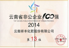 2014年度云南省非公企業(yè)100強(qiáng)第13名