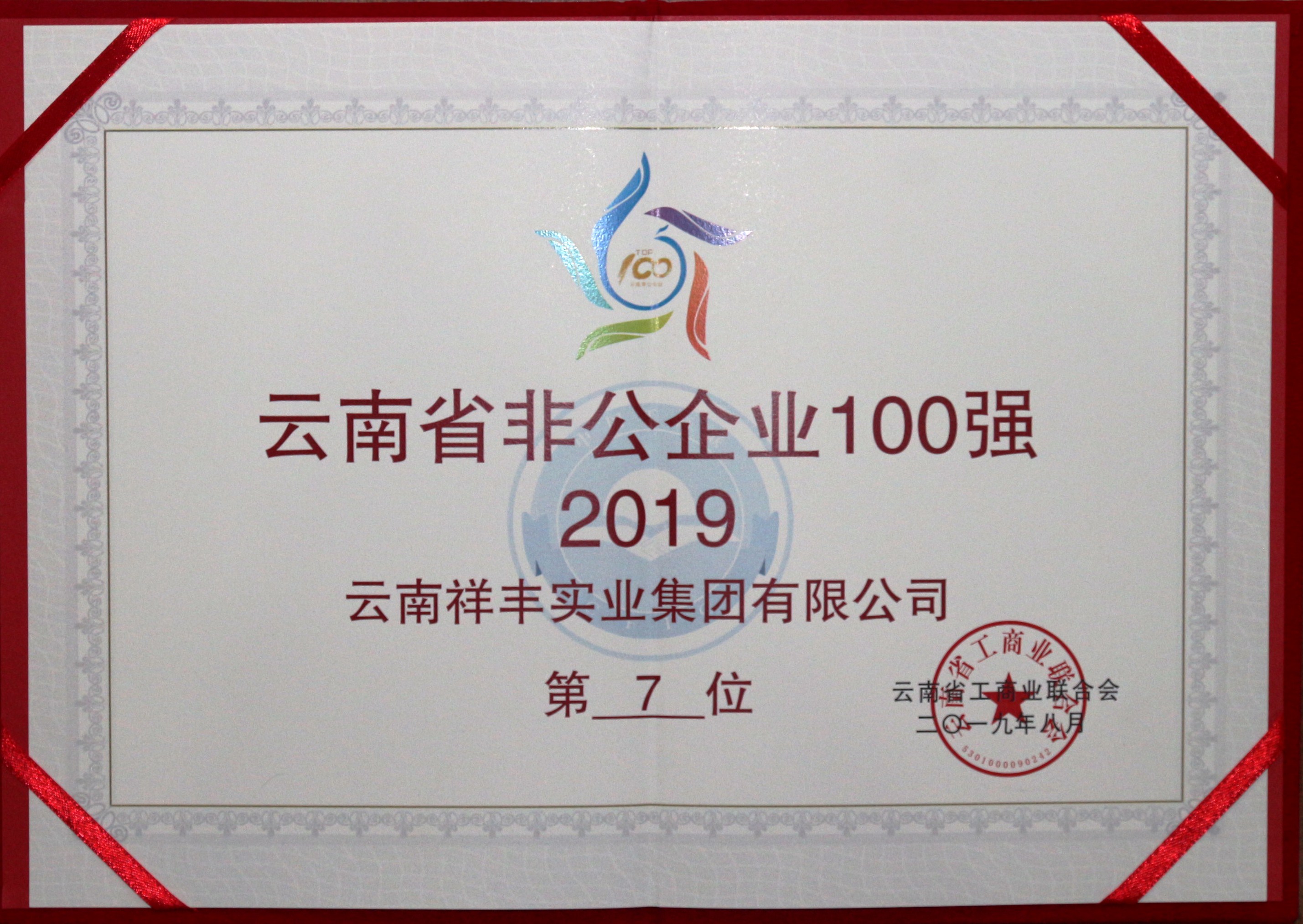 2019云南省非公企業(yè)100強(qiáng)第7位