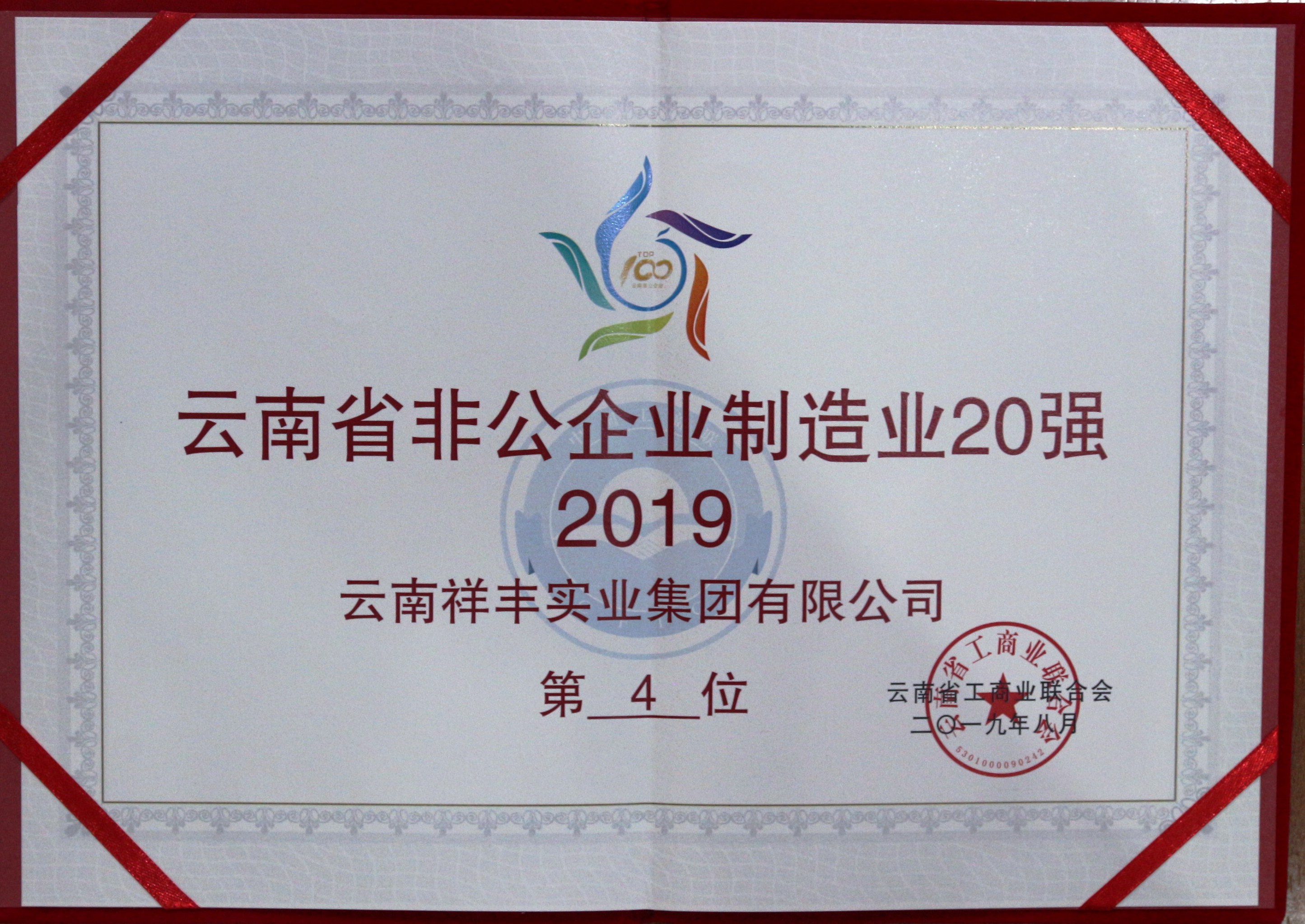 2019云南省非公企業(yè)制造業(yè)20強(qiáng)第4位