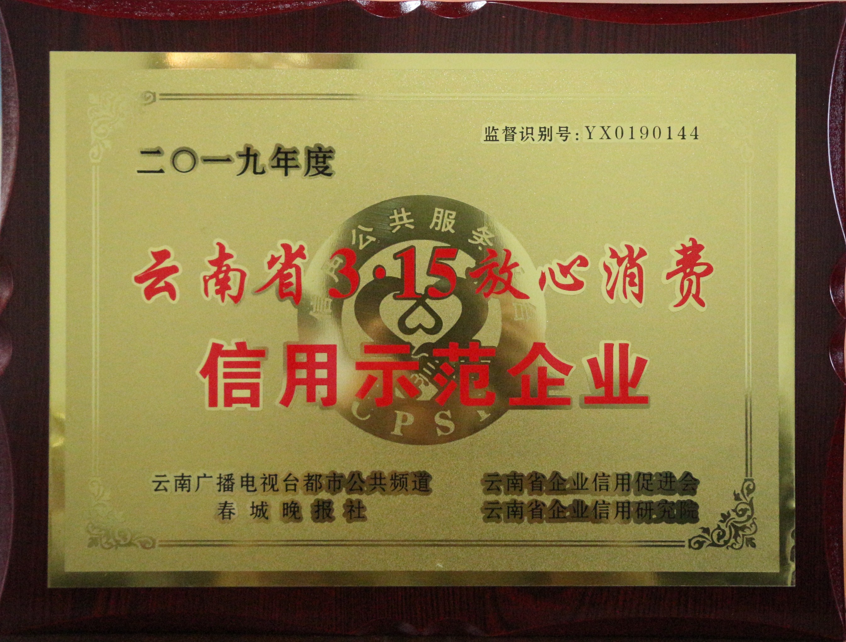 2019年度云南省3.15放心消費(fèi)信用示范企業(yè)