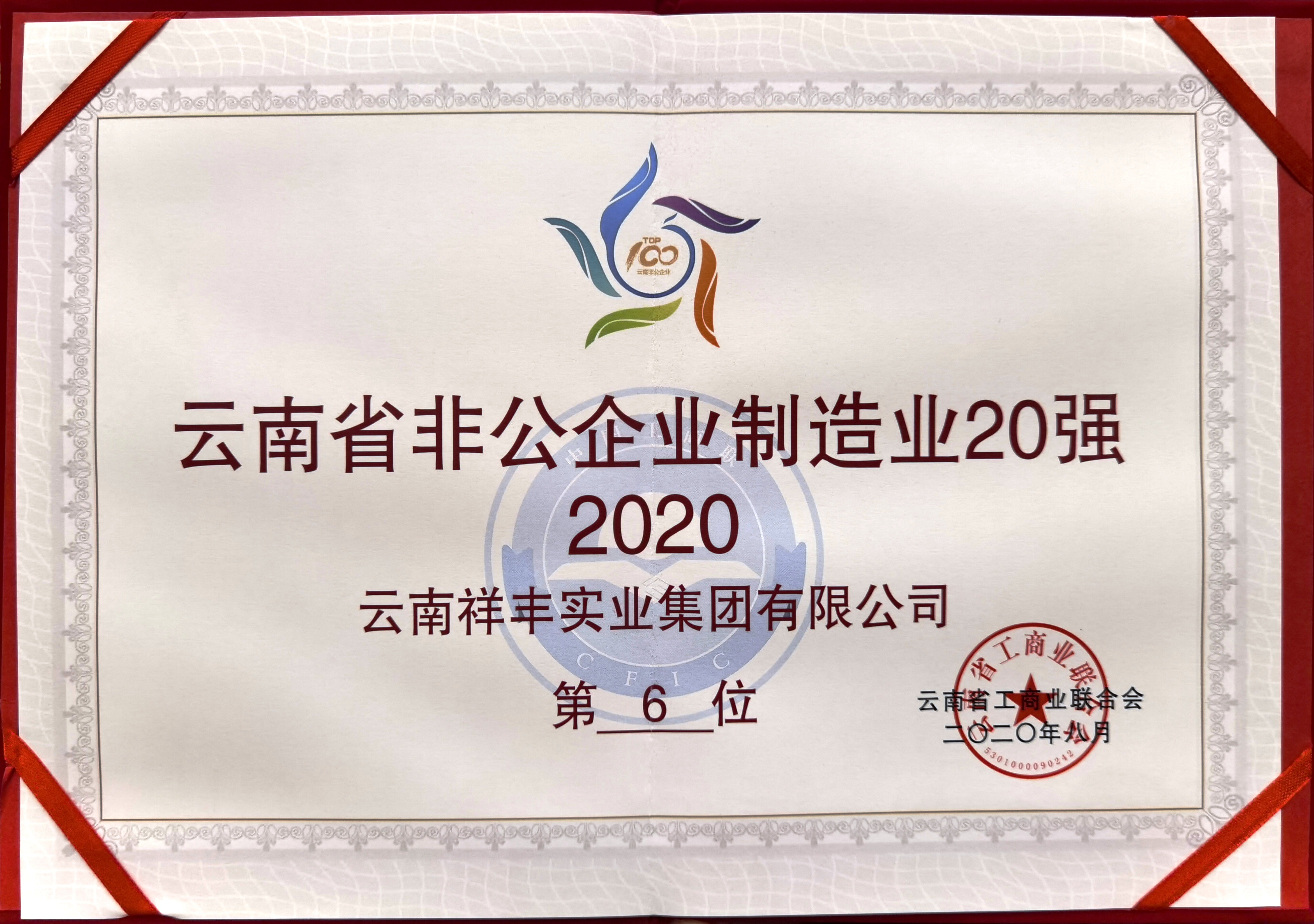 2020云南省非公企業(yè)制造業(yè)20強(qiáng)(第6位)