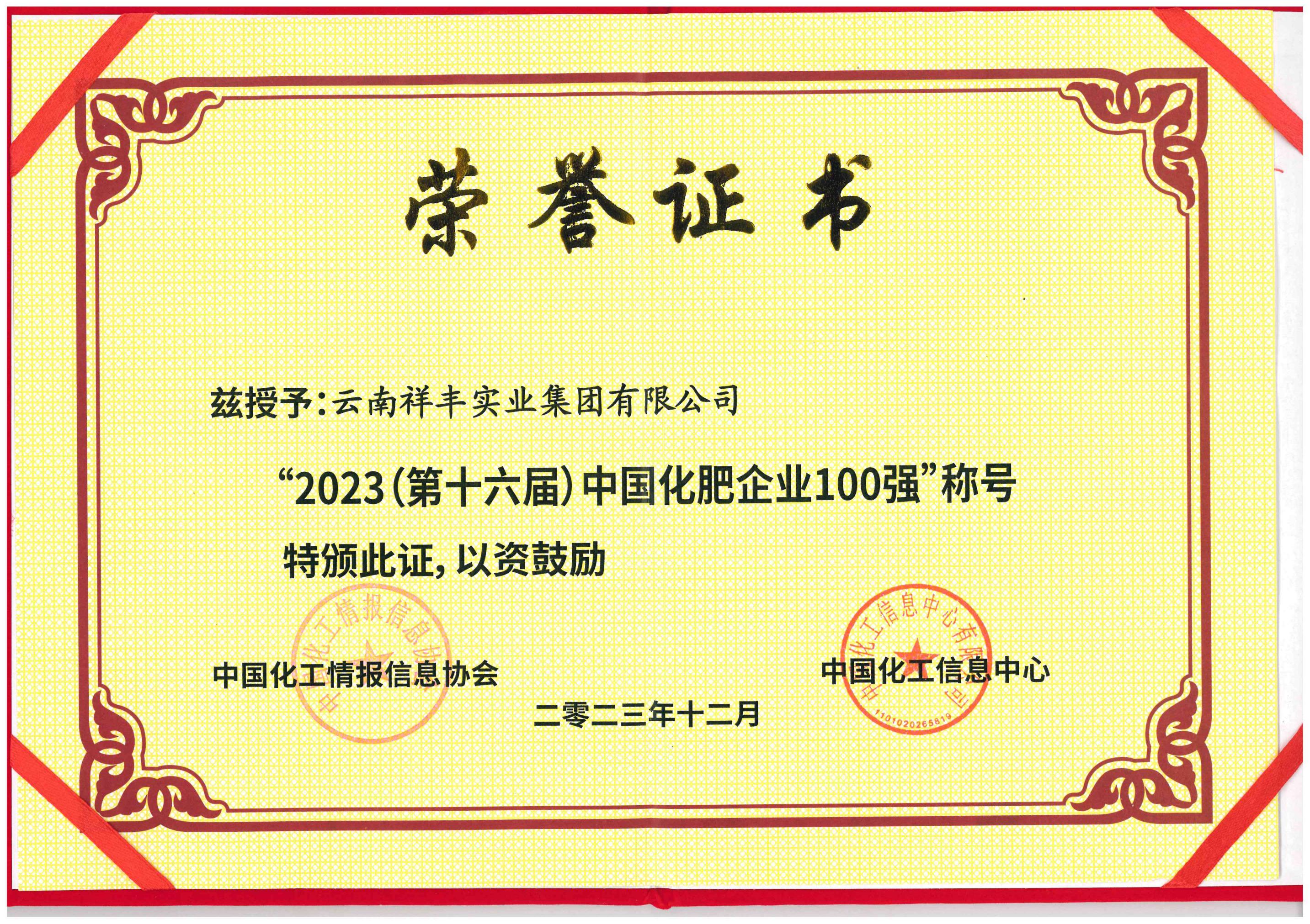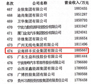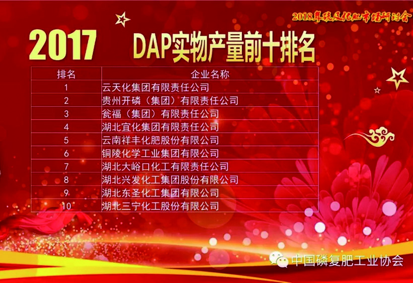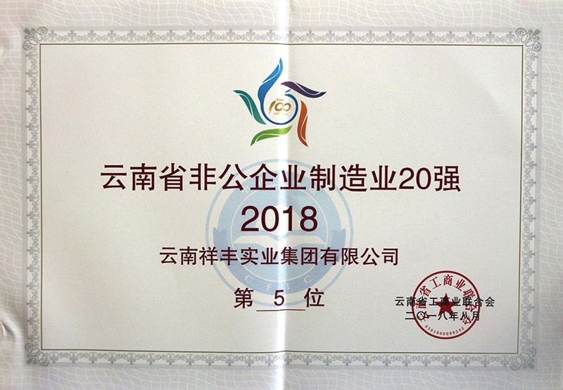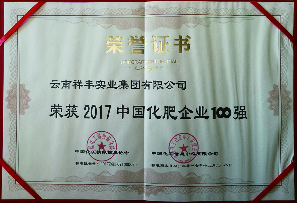 2018年12月16日,2018(第十一屆)中國化肥企業(yè)100強發(fā)布會暨國家化肥品牌計劃高峰論壇在山東青島舉行。云南祥豐集團位列中國磷復(fù)肥企業(yè)100強第十名,中國化肥企業(yè)100強第十九名