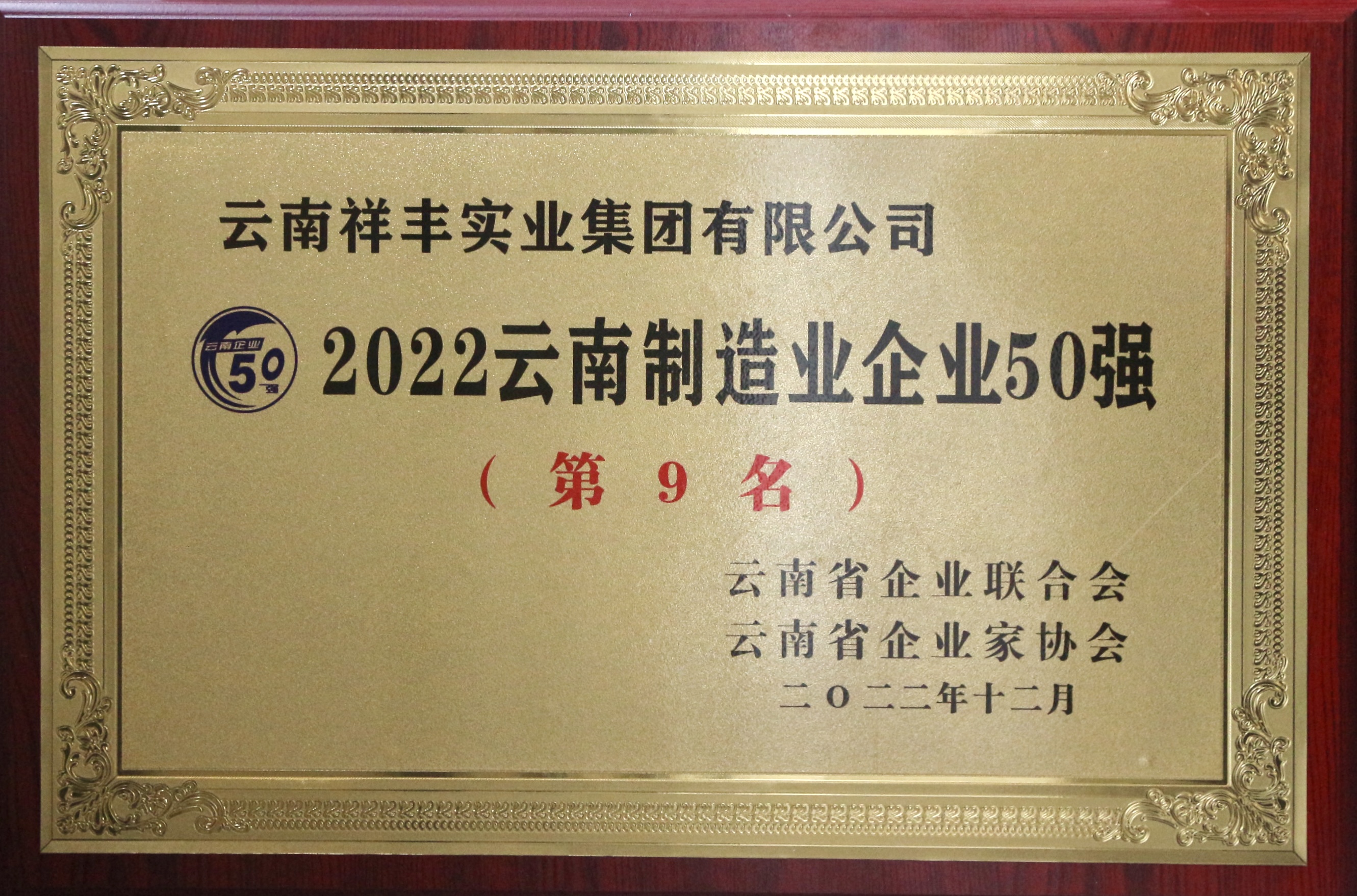 2022云南制造業(yè)企業(yè)50強(位列第9位)
