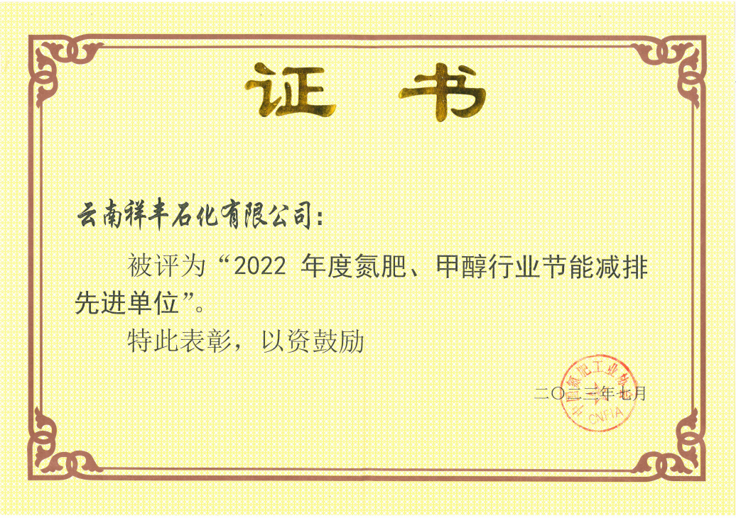 云南祥豐石化榮獲“2022年度氮肥、甲醇種行業(yè)節(jié)能減排先進單位”、“合成氨、甲醇生產(chǎn)原料燃料動力消耗對標”標桿單位、水效“領(lǐng)跑者”...