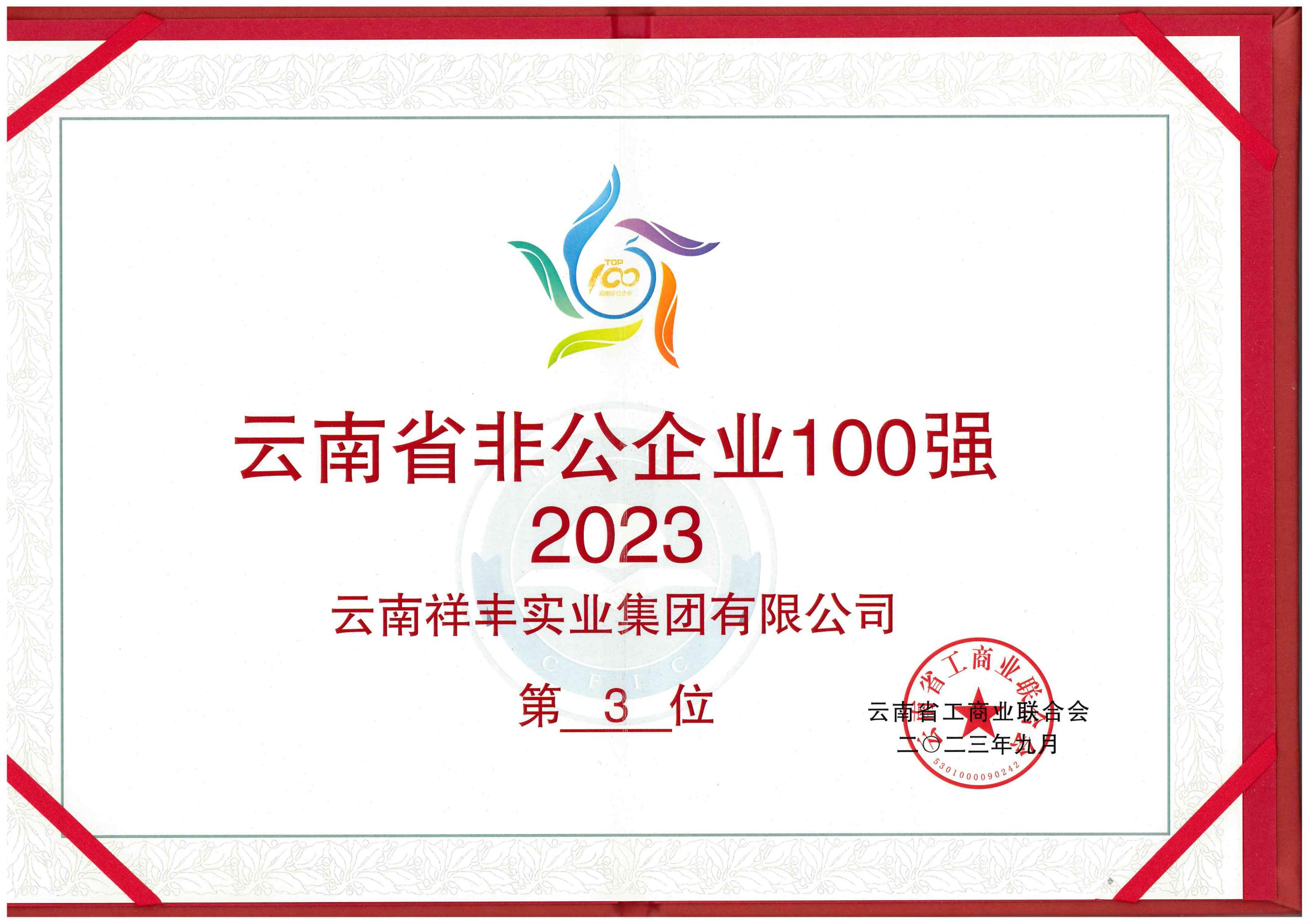 2023云南省非公企業(yè)100強(qiáng)(位列第3位)