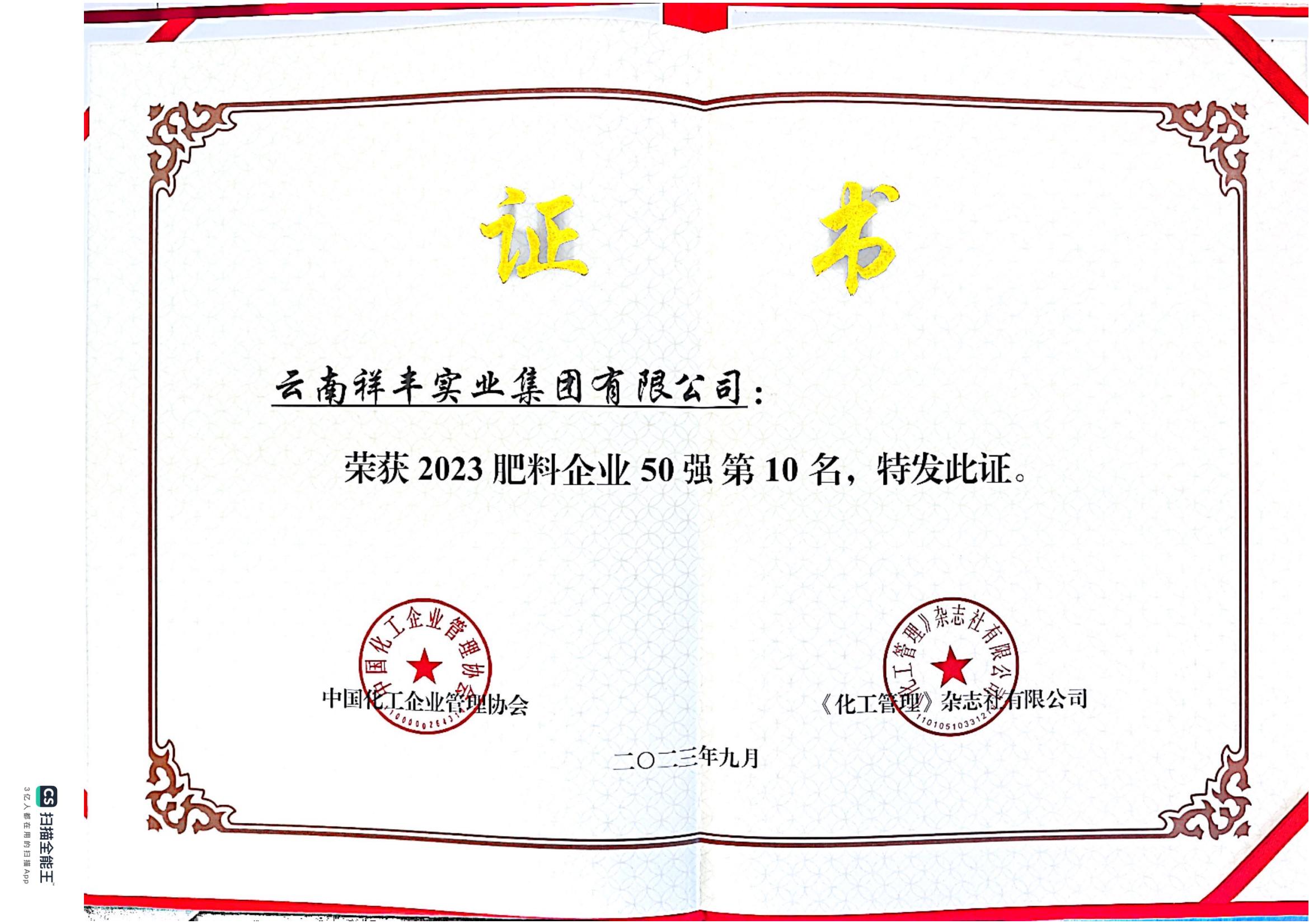 2023年肥料企業(yè)50強(qiáng)(第十名)