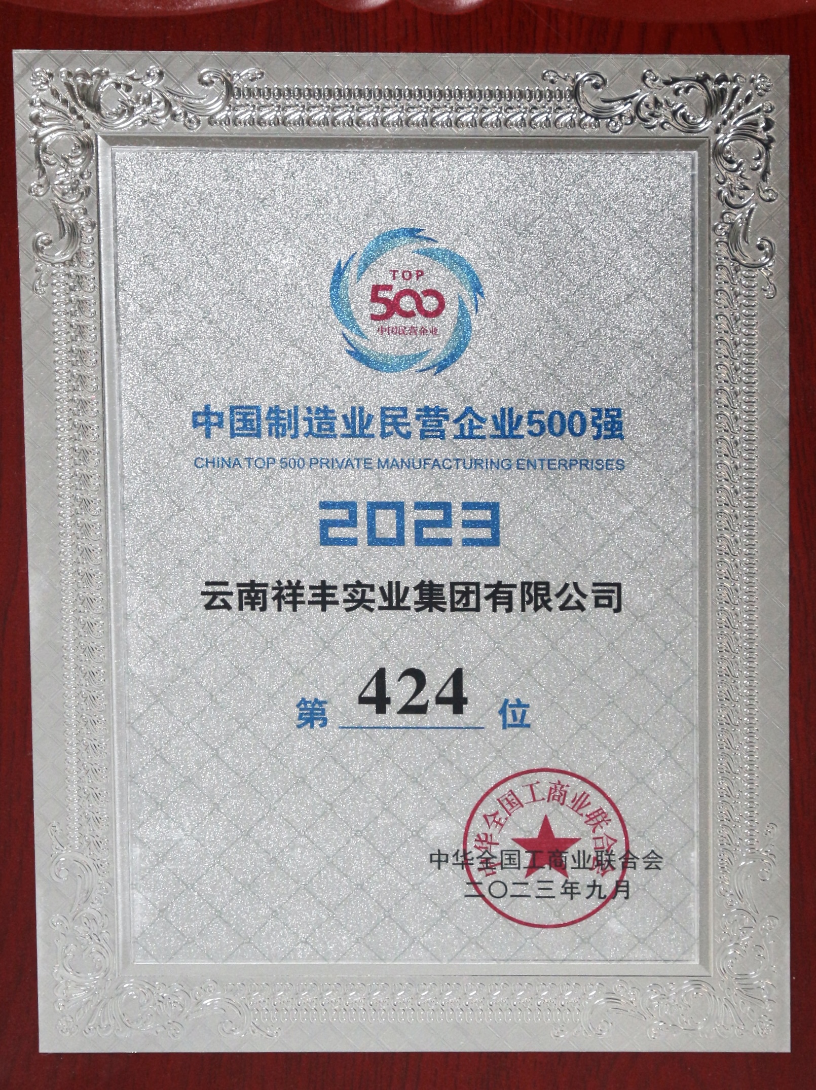 2023中國(guó)制造業(yè)民營(yíng)企業(yè)500強(qiáng),位列第424