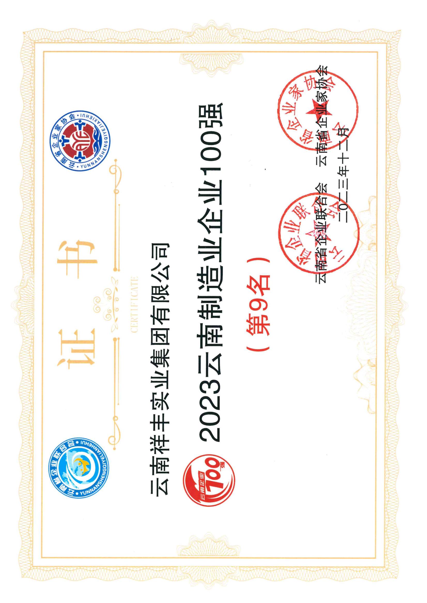 2023云南制造業(yè)企業(yè)100強(qiáng)(位列第9)